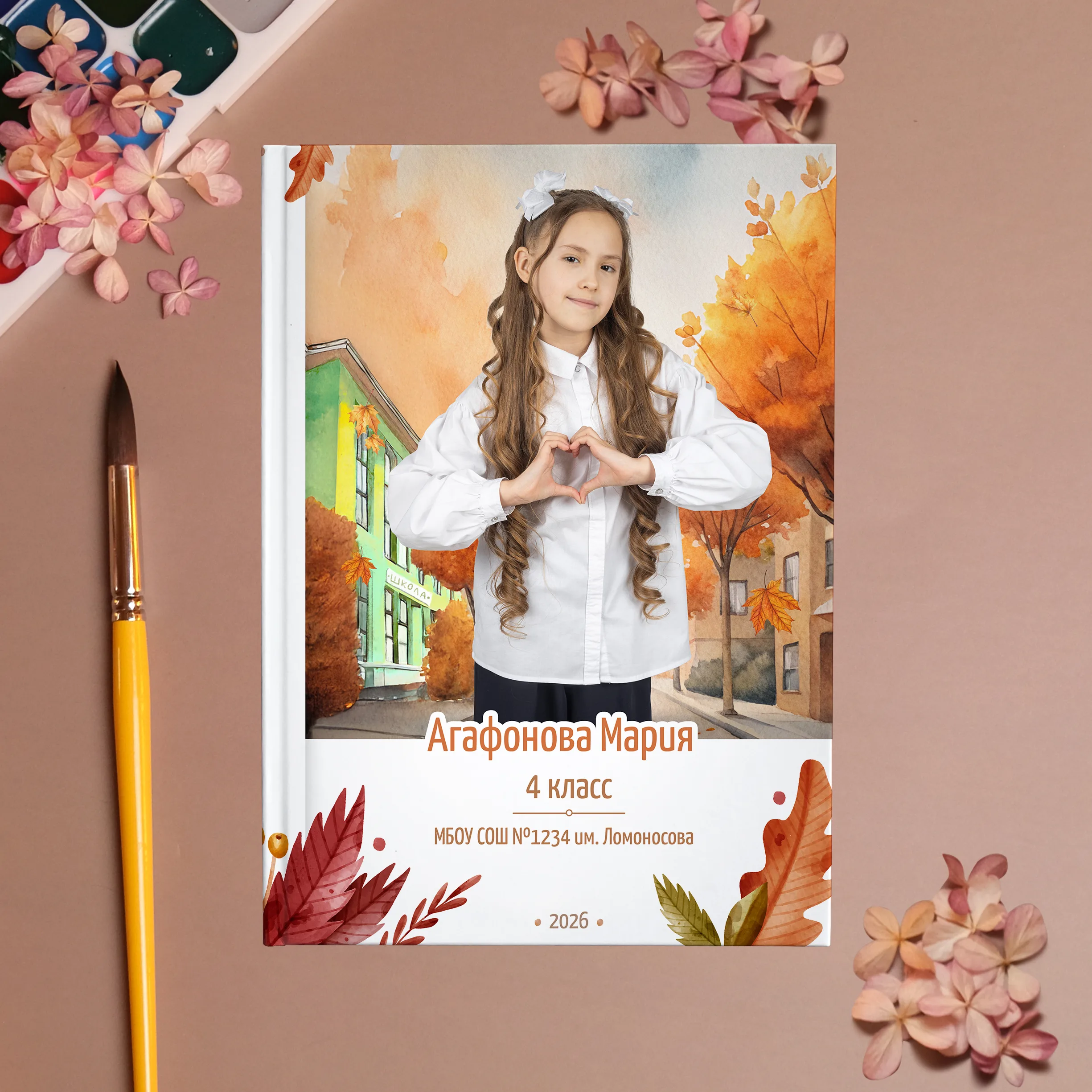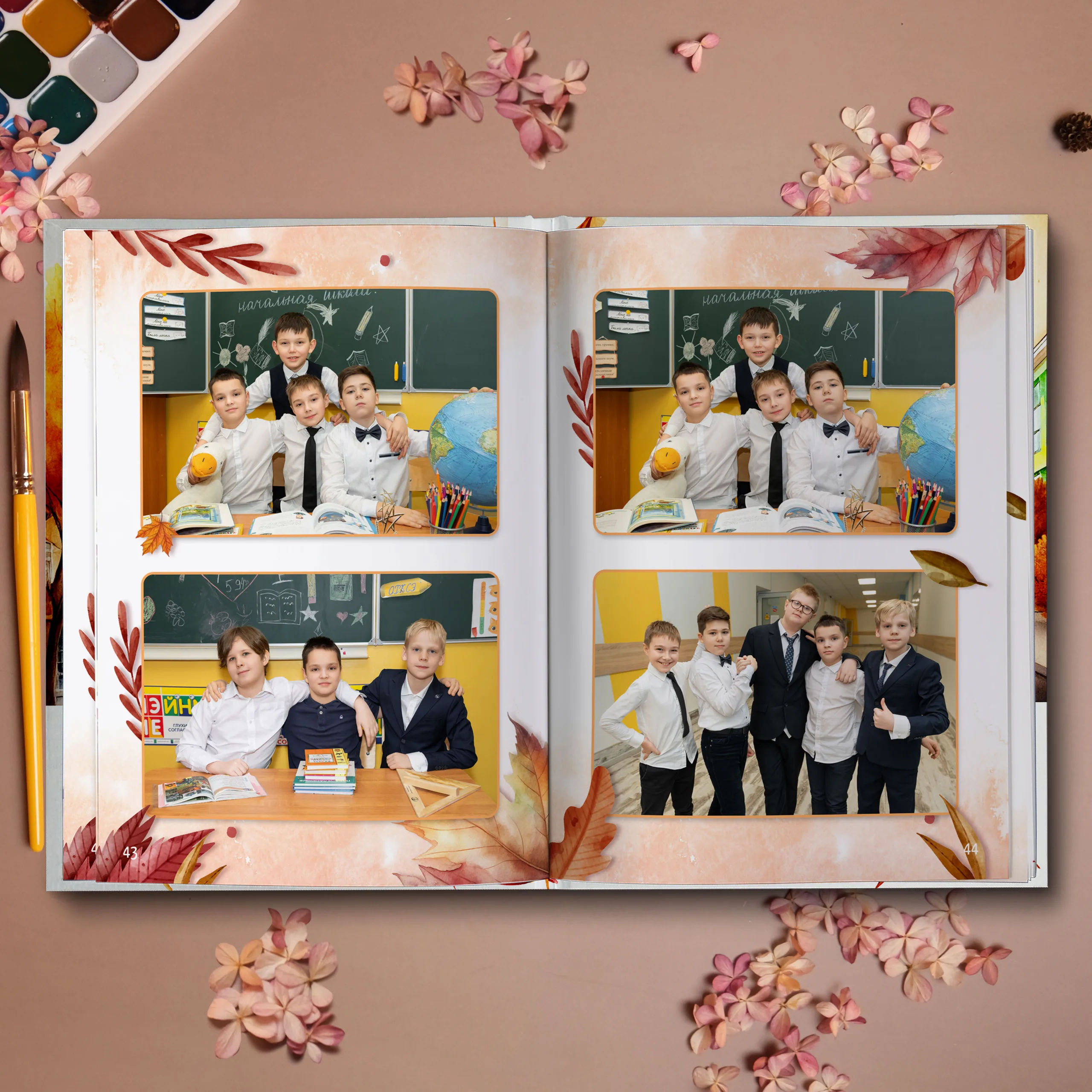 3ий разворот и далее — личные страницы учеников (портретная фотография, информация об ученике и 2 фотографии личного репортажа)