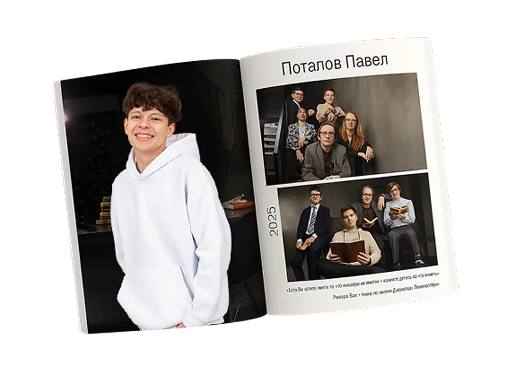 Конечно! На нашем сайте представлено девять стильных шаблонов: «Звездный стиль», «Персона», «Статус», «ВИП» и другие форматы. Каждый макет включает в себя портрет учащегося, виньетки всего класса, общие снимки и фотографию классного руководителя. Если ни один из них не подошел, мы разработаем индивидуальное оформление.